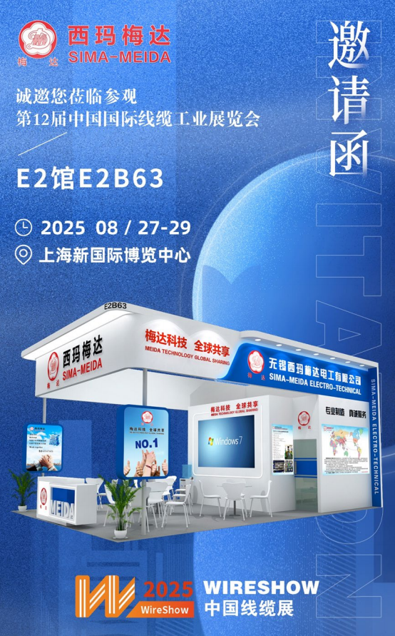 As this industry grand event is about to kick off, Wuxi Sima-Meida Electro-Technical Co., Ltd. sincerely invites you to attend the 12th China International Wire & Cable Industry Exhibition (WireShow 2025), to explore new opportunities in the wire and cable equipment industry and discuss the new future of green and intelligent transformation.